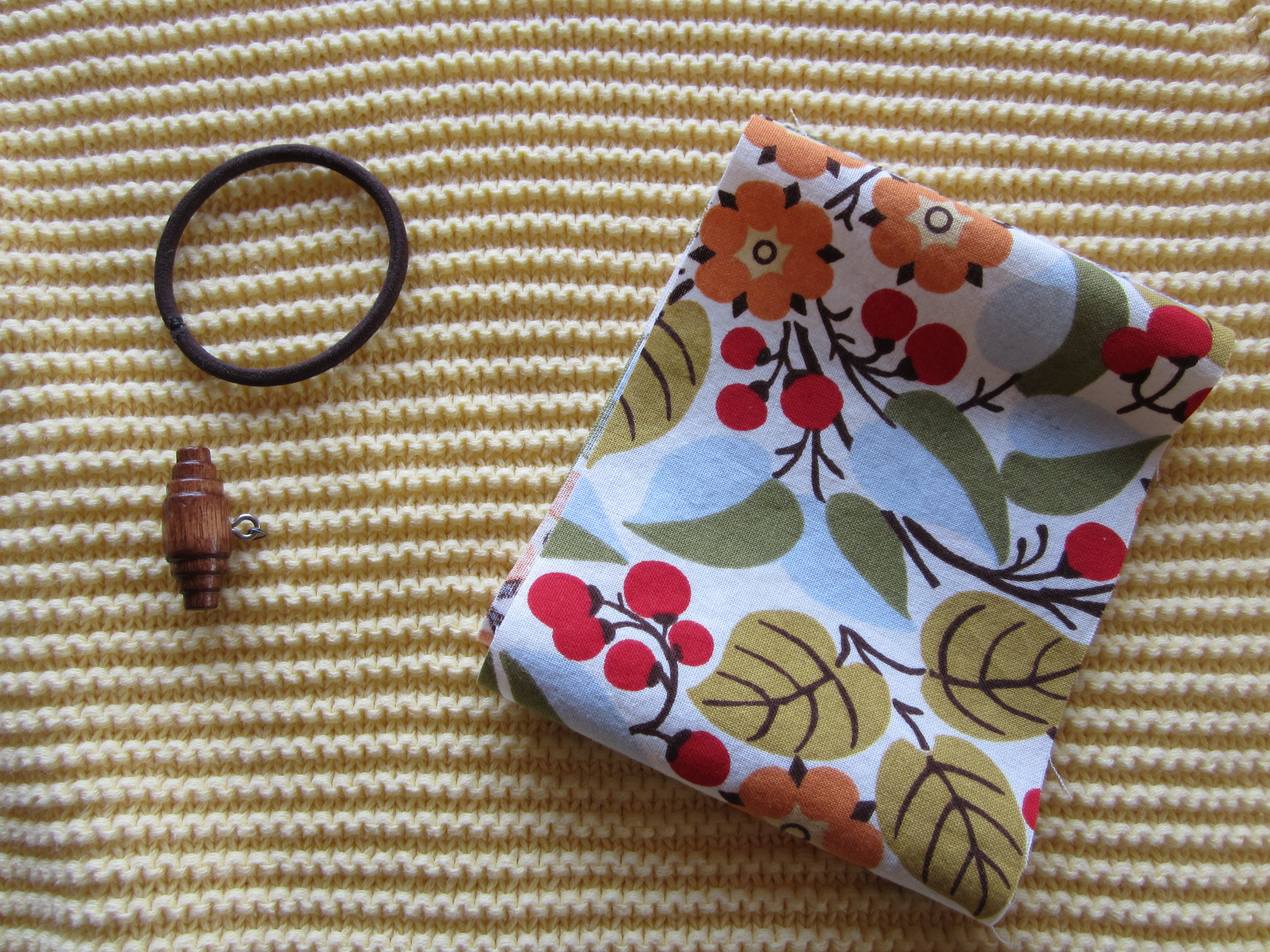 In addition to the sweater this was all I needed. A button, a hairband and a strip of fabric.