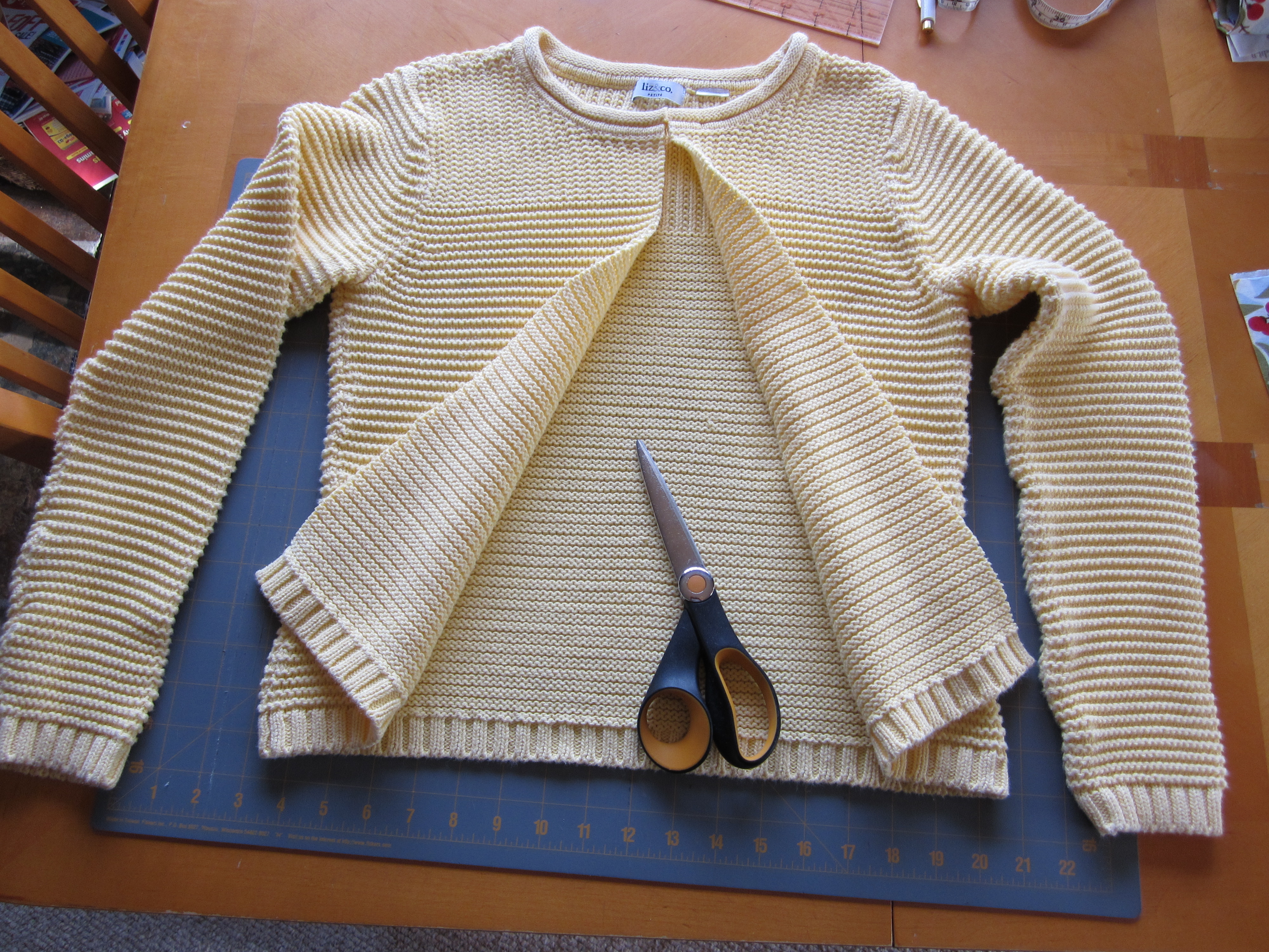 • Yes, I didn’t do anything else. I’ve found that when cutting up the middle of a sweater it doesn’t get as “wavy” as it does when cutting the bottom of a sweater.