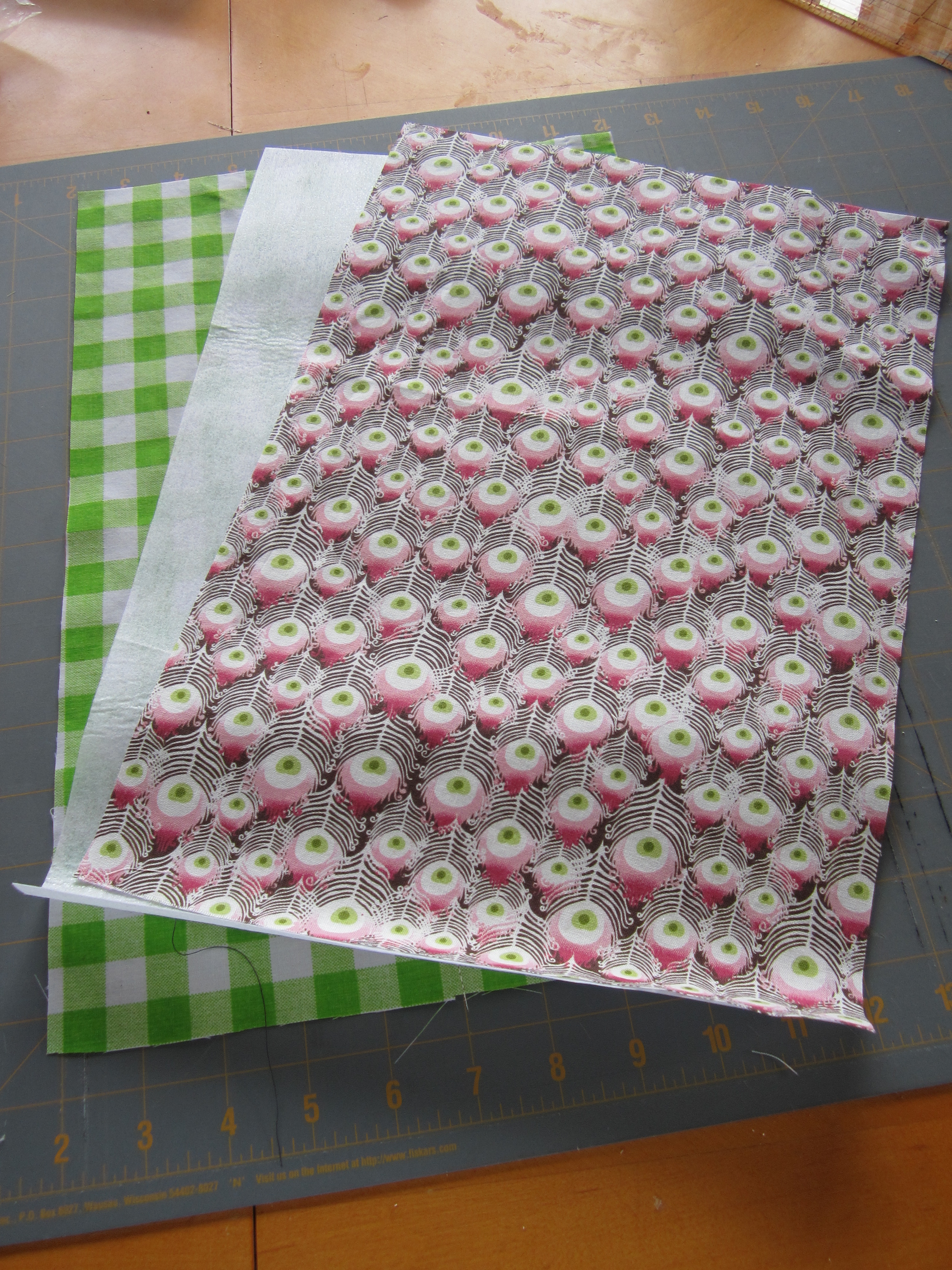 Cut a 10 in. x 15 in. piece of iron on interfacing and outside fabric.