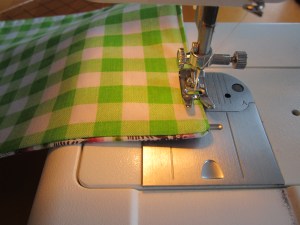 Next, sew around all edges, leaving a 3 or 4 inch opening to pull it right side out.