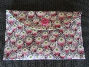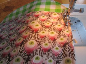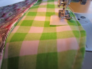 Sew it to the flap and the front of the cover so it will match. I should have done this step BEFORE I sewed up the sides. (My renegade sewing self is shining through here.)