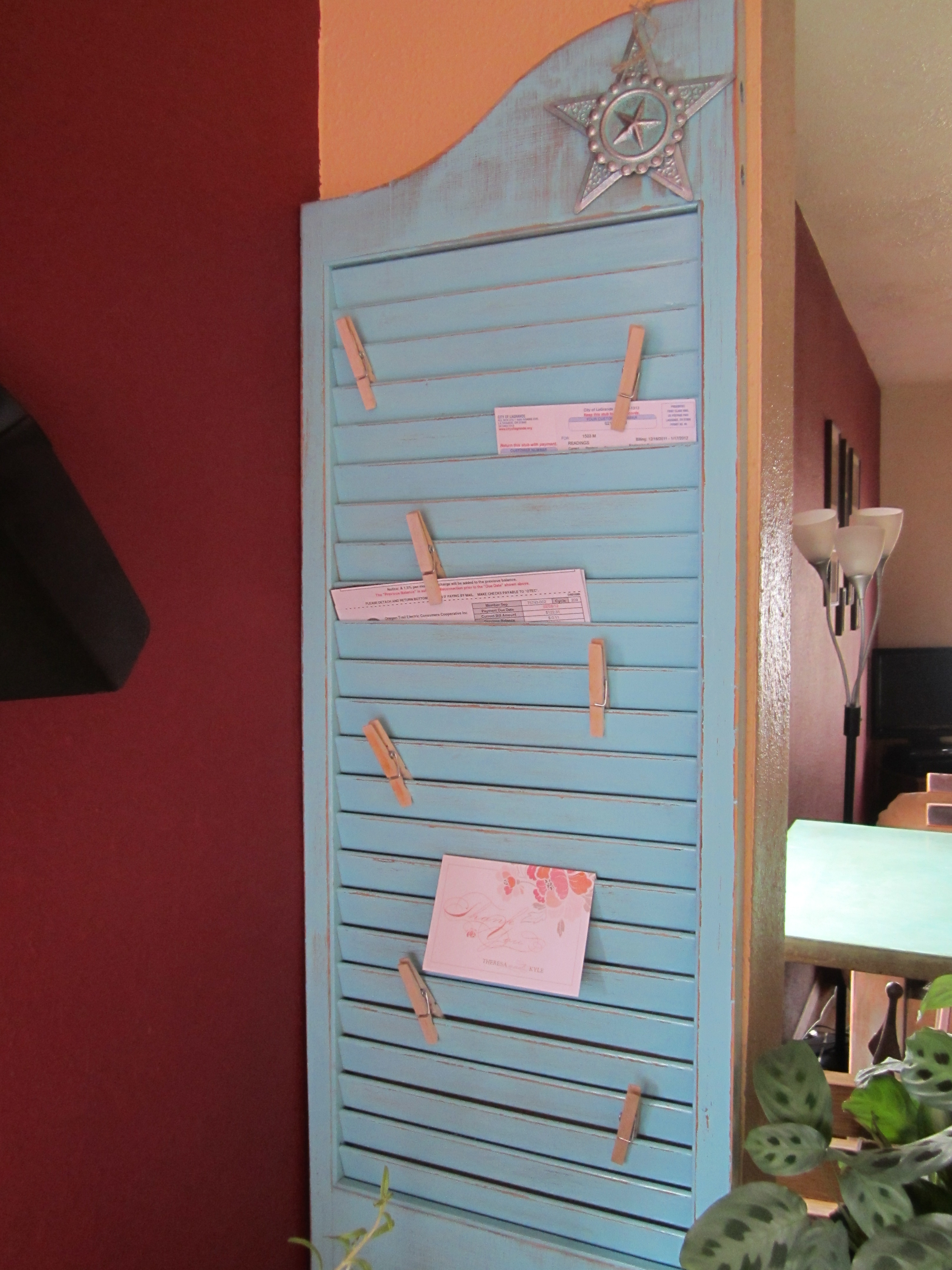 Brown eyes, straight hair, AND the re-purposing gene?!!?? I guess it’s true, the apple doesn’t fall too far from the tree. My daughter Katie created an upcycled memo board from an old lonely shutter she found at the thrift store.