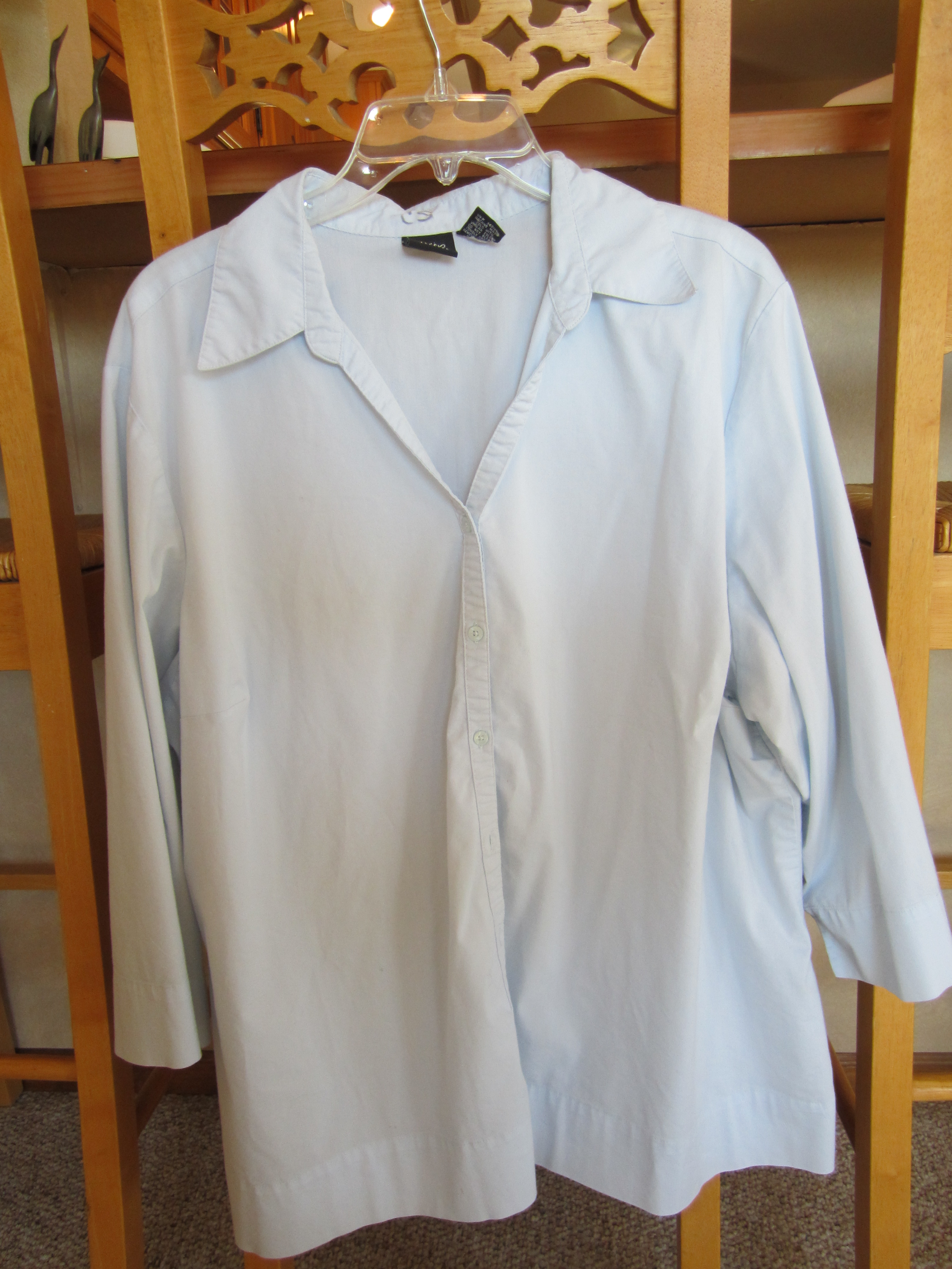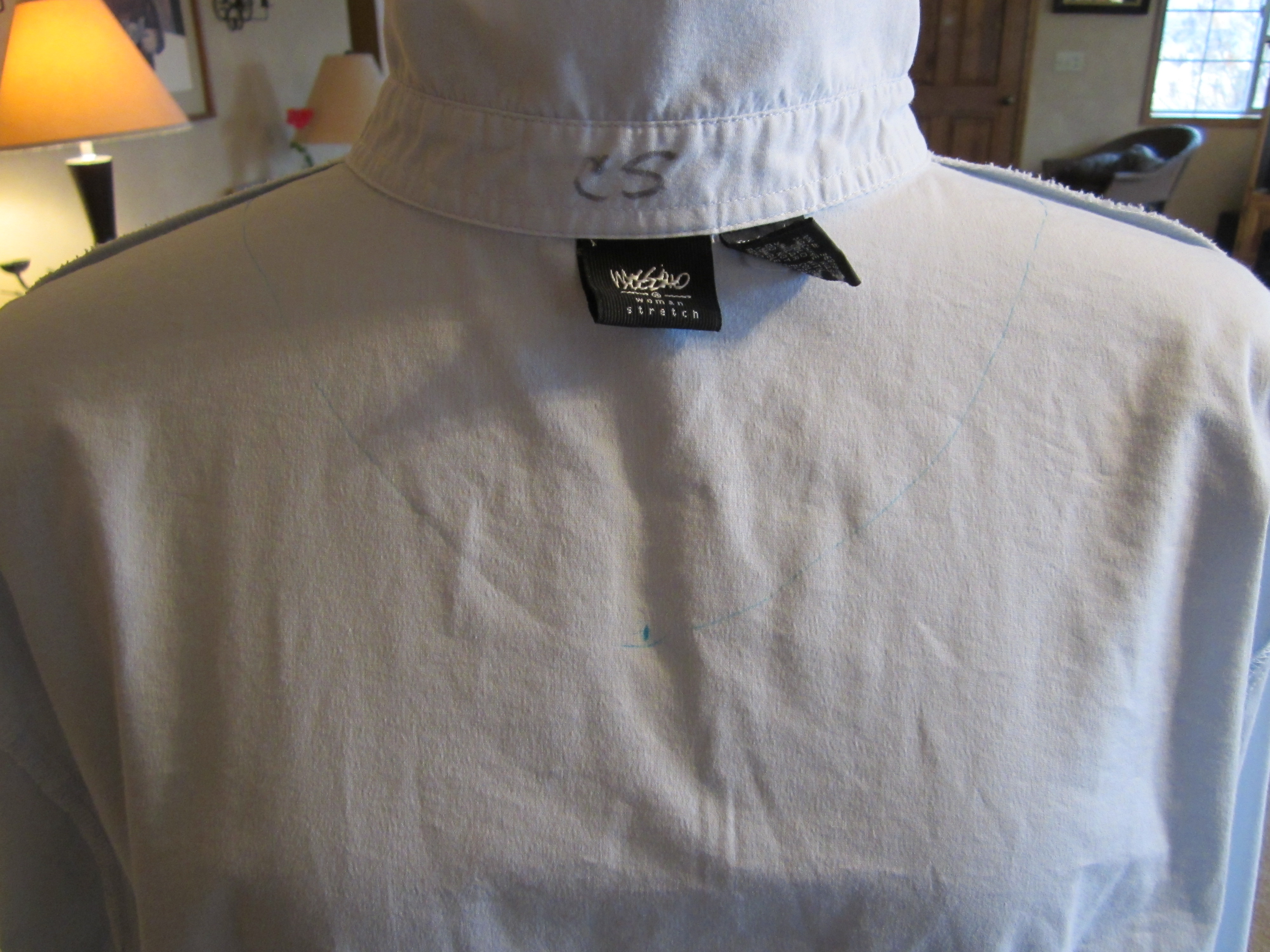 This outfit I saw on Pinterest made my mouth water. (No it wasn’t the ice cream cone.) I just knew I could make something similar if I tried. Found this big blue shirt at the thrift store and just started to cut.