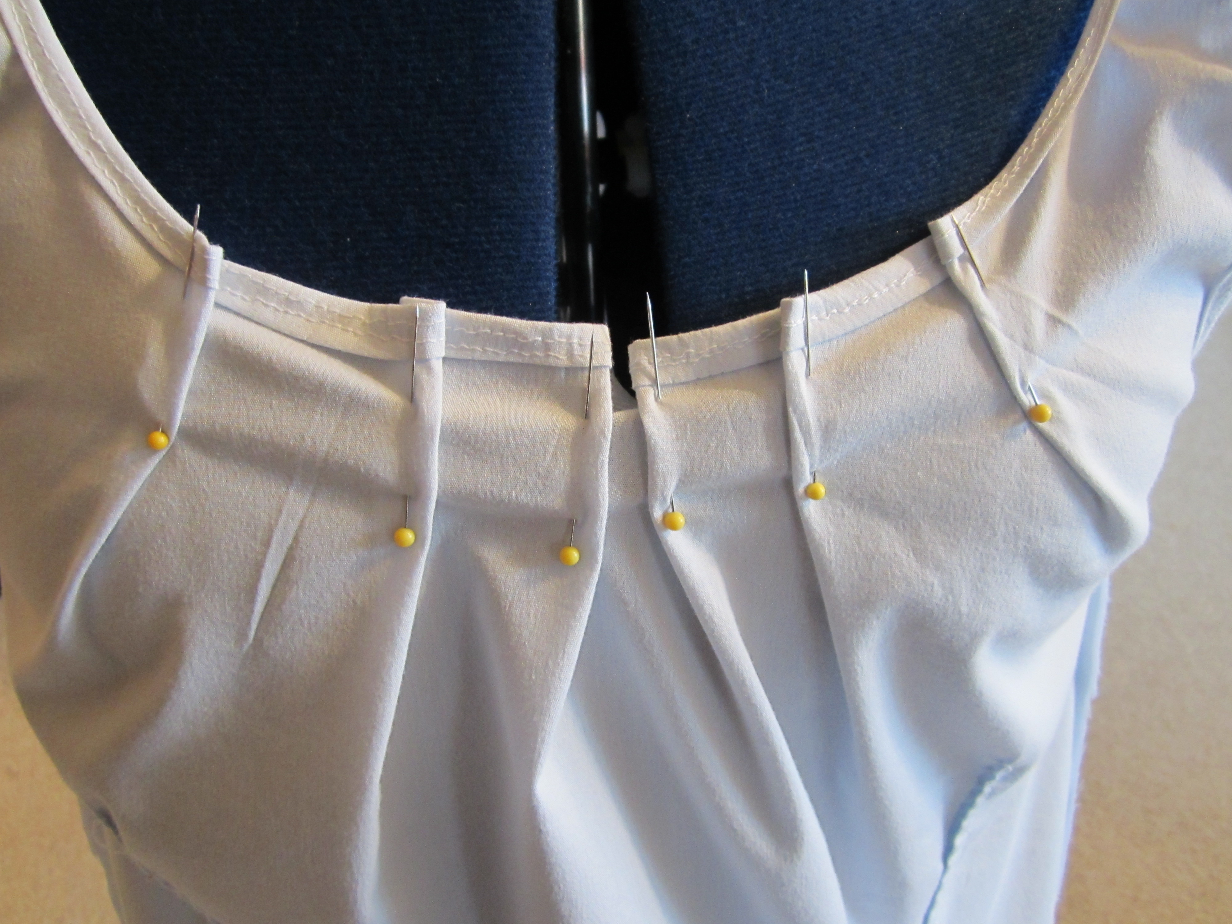 Then pinned some pleats and sewed 2 lines of stitching about a half inch down. And took in the sides about 4 inches on each side.
