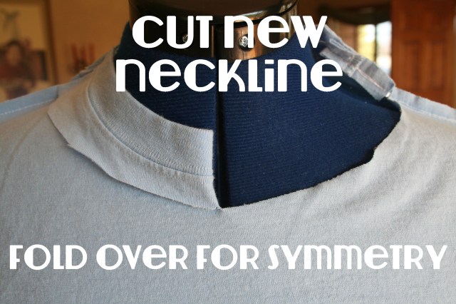 I found the perfect color blue t shirt to refashion at my thrift store the other day.