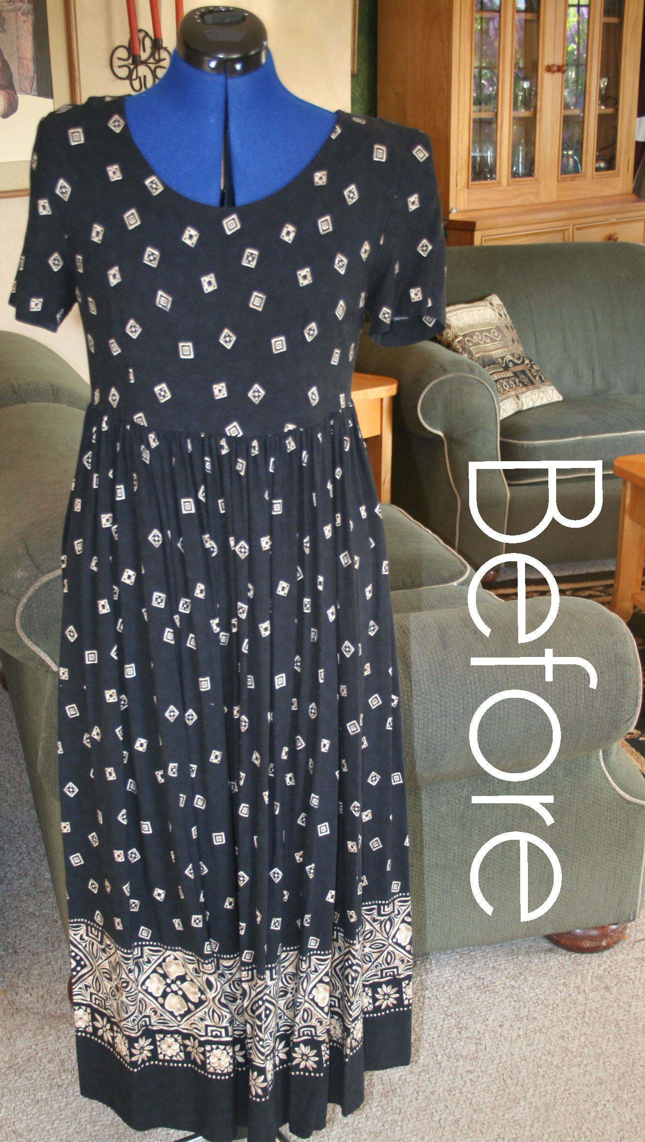 I also cut away about twenty four inches from the sides of the skirt. There was sooooo much material there. Much more fullness than even MY hips need to feel comfortable.