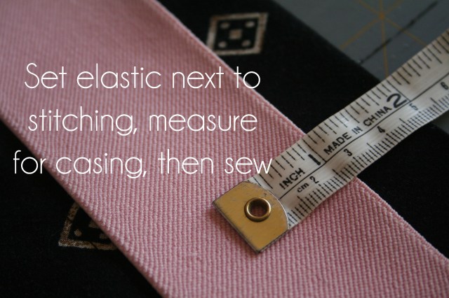 Set the elastic next to the stitching and measure how far from the top to sew the next stitching line to create a casing for the elastic.