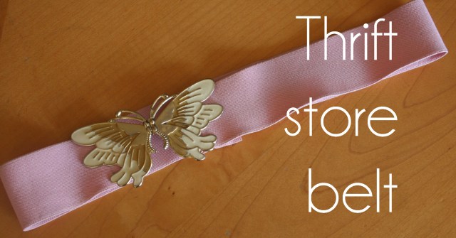 Yep, you guessed it, it started out as a twenty five cent belt from the thrift store. When I saw this I knew I’d never wear it as a belt but it was a perfect piece of elastic for some day. Well, today was the day! I took off the interlocking butterflies (which actually have some possibilities for a future project, just not sure what yet) and since the elastic is hidden within the casing, the pink isn’t an issue.