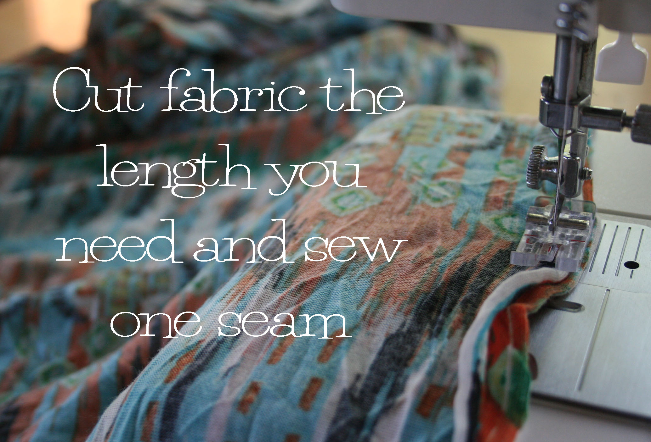 My fabric was a lightweight knit and 60 inches wide so I just used it all and sewed the seam down the selvage edge.