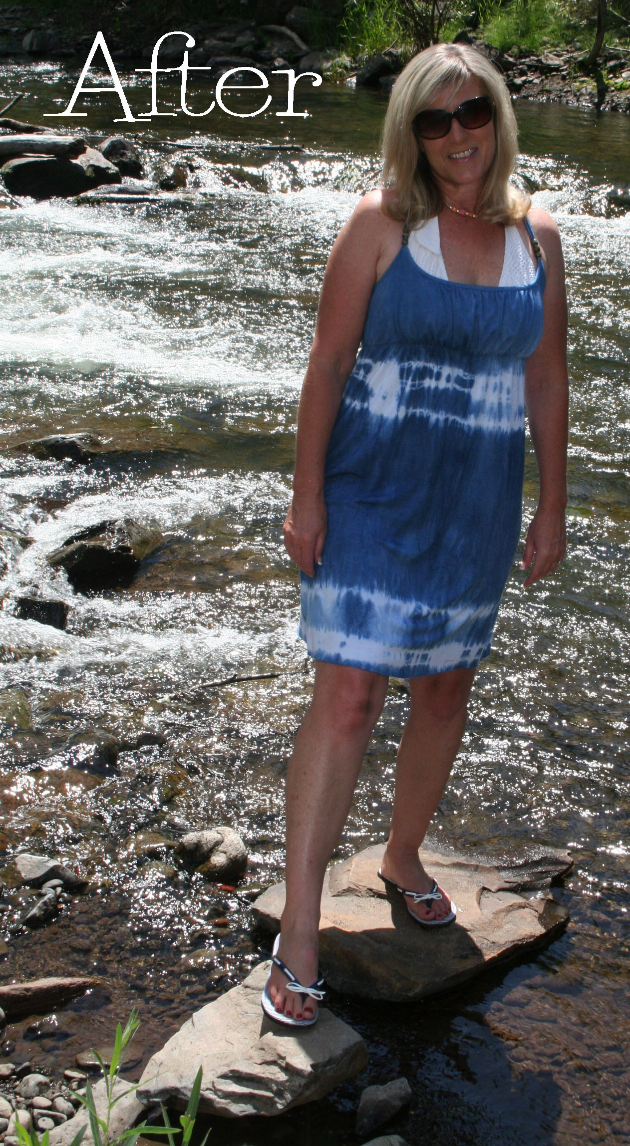fun! I did a tye-dye party for a girlfriend a few years ago. I love that you can do it in the yard. I really like the denim dye for a mono-tone look too. You look like a cute little hippie chick at the river!