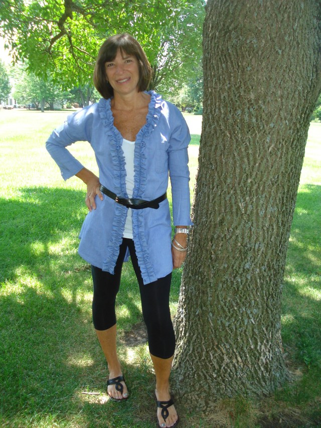 She also sent a picture of this cute men’s shirt refashion inspired by The Renegade Seamstress Ruffle Cardigan T Shirt Refashion