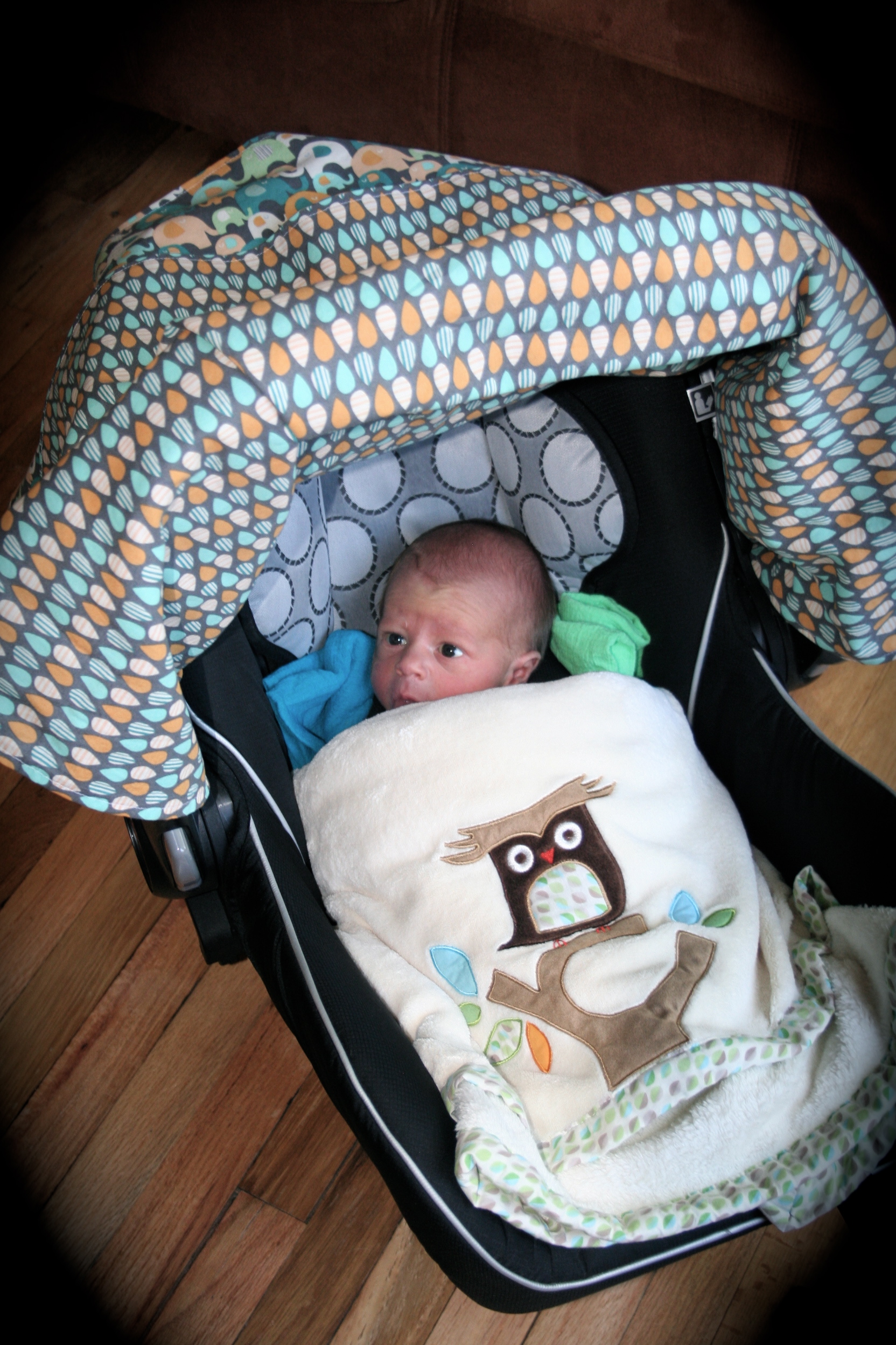 Congratulations! What a handsome little man! 🙂 (Cute car seat cover too!!)