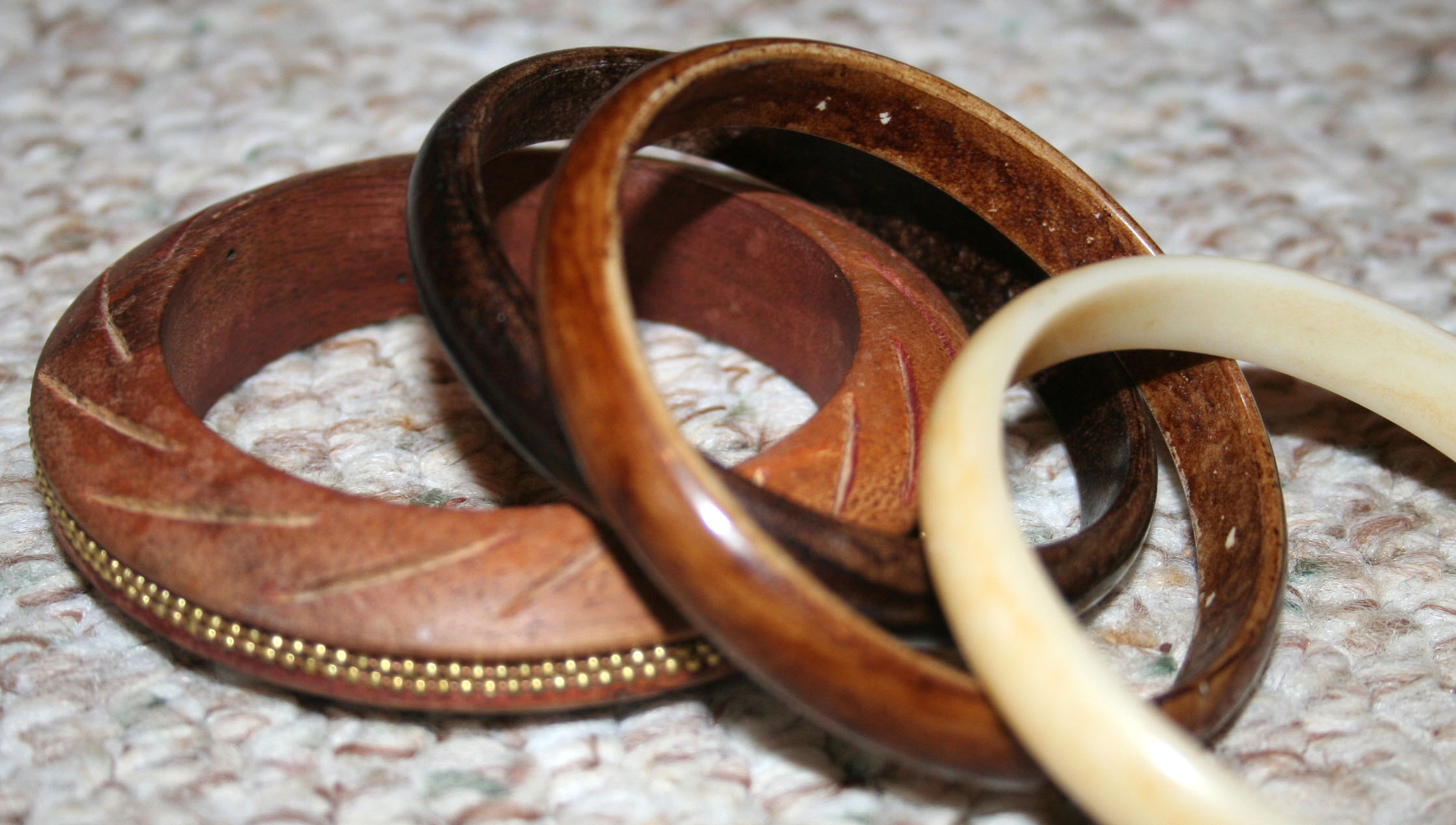 Some brown wooden bangles.