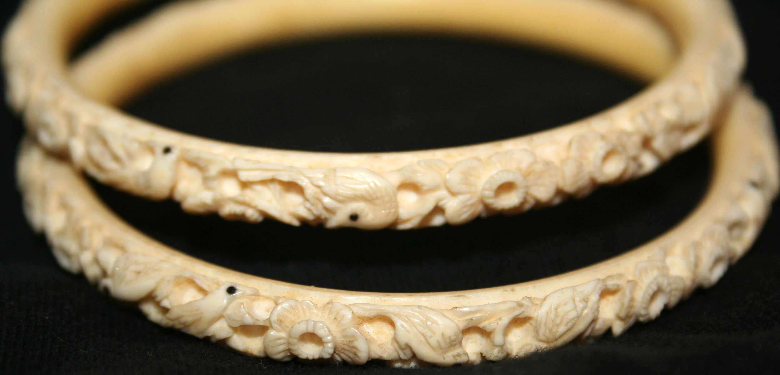 Add to that a couple of my grandmother’s ivory bracelets. (I love the intricately carved birds and flowers.)