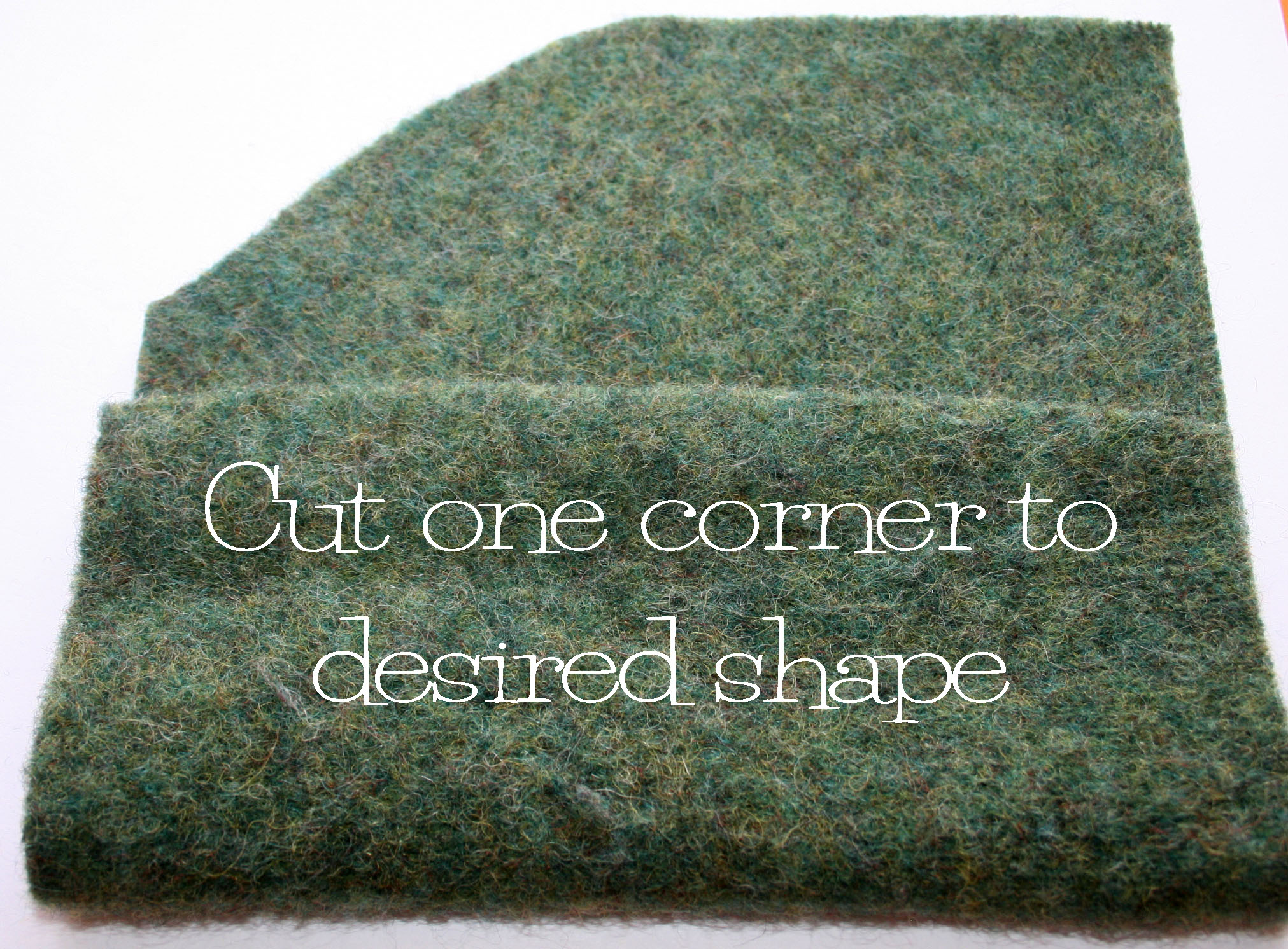 Start by washing a 100% wool sweater in hot water and drying it in a hot dryer to cause the fibers to become tight so they won’t fray. This is the process called “felting”.