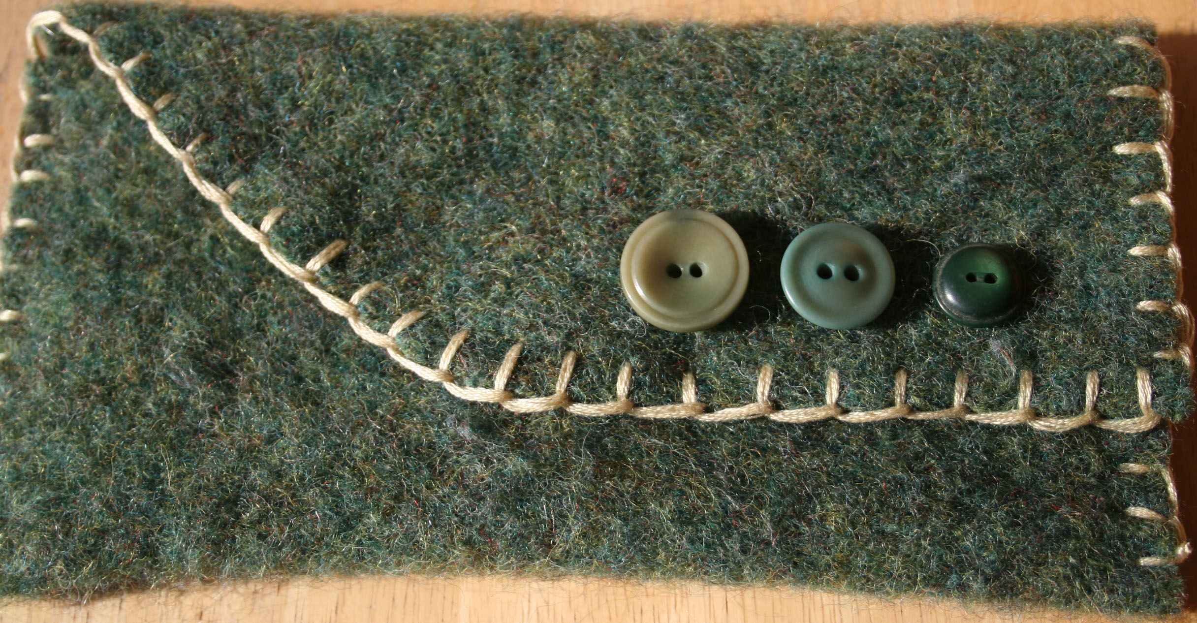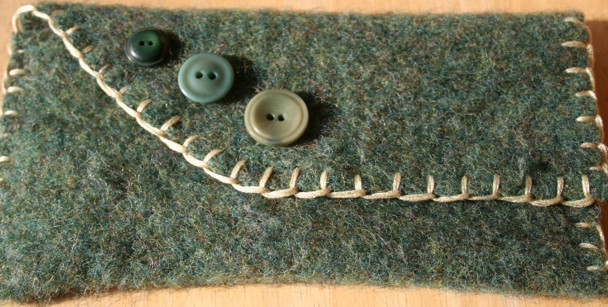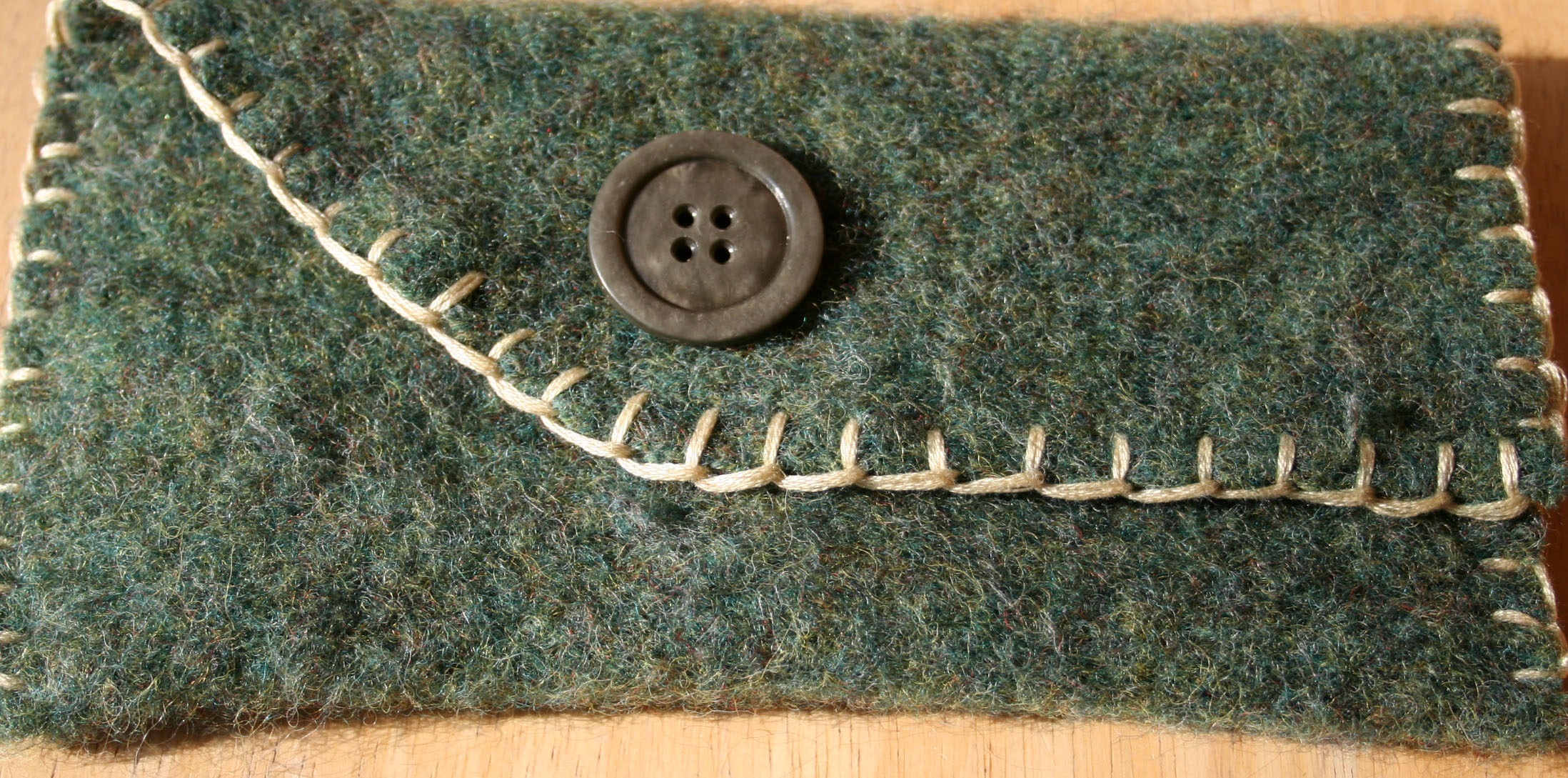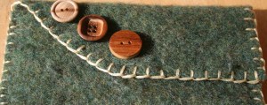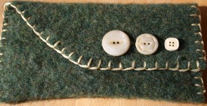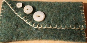 I’m a fan of the blue/green buttons, too. I never could wear wool sweaters. I find them way too itchy. But a wool clutch I could carry. Too cute!