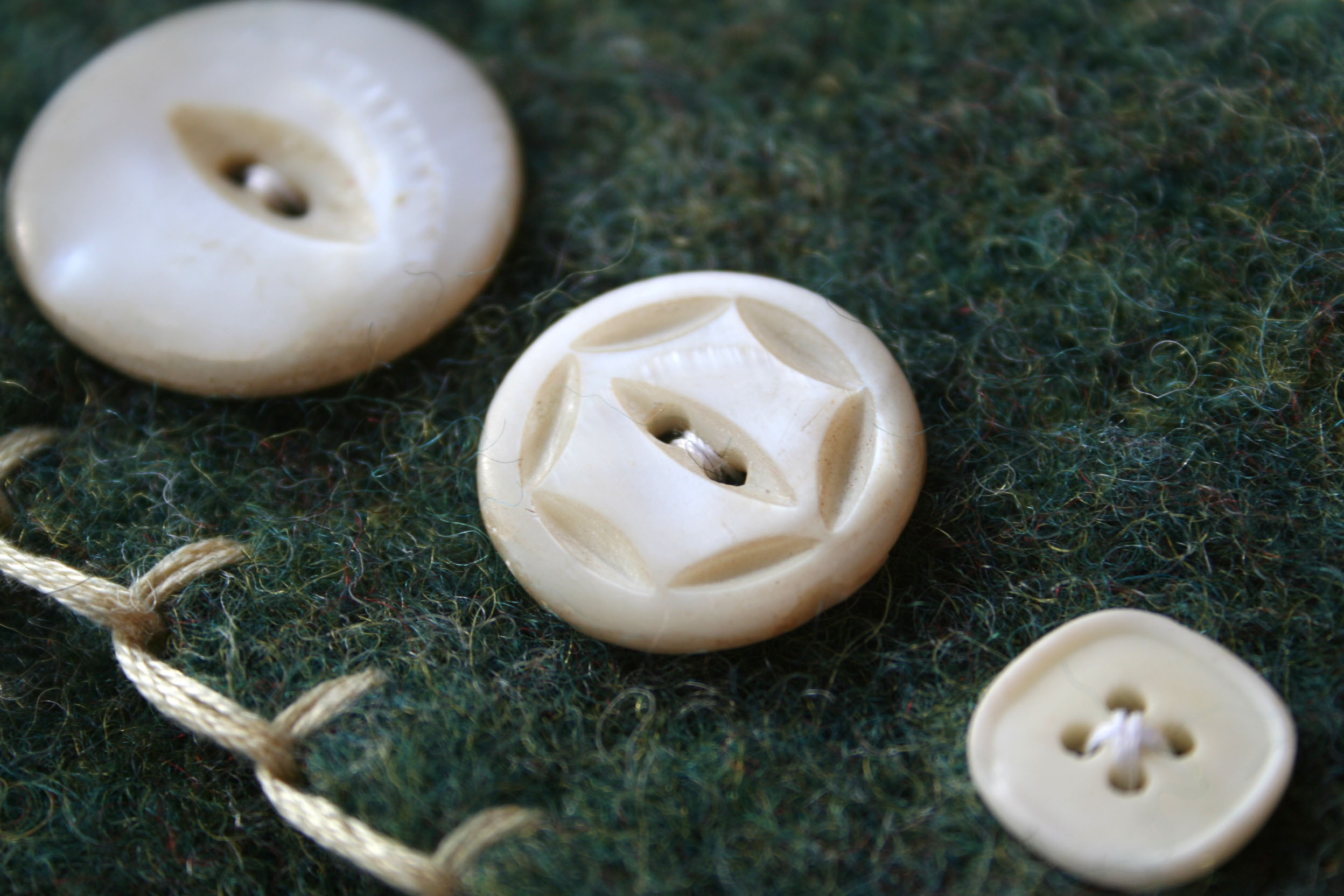 I finally settled on these very old buttons. I’m not sure what they are made from, almost look like they might possibly be ivory. I loved the different shapes and details.