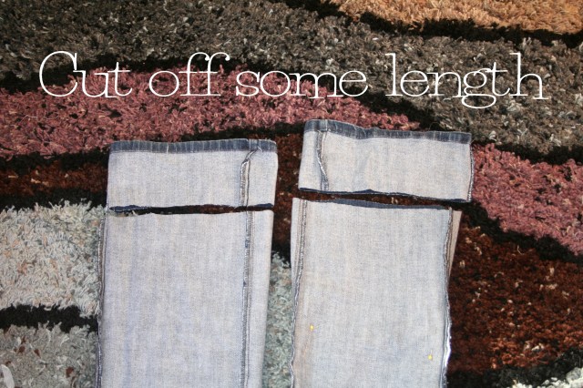 First, cut the jeans to your desired length. (If you’d like to keep the original hem, check out this tutorial on hemming jeans)