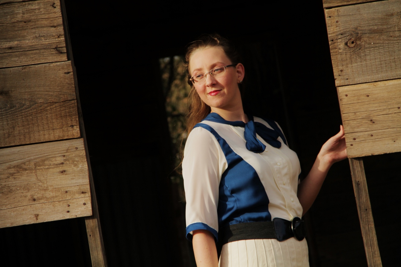 the blue shirt, and attached the sleeves from the cream blouse. The sleeves I