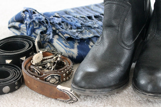 The beauty of this project is that they don’t have to match. Use completely different belts on the other boot for a fun bohemian look.