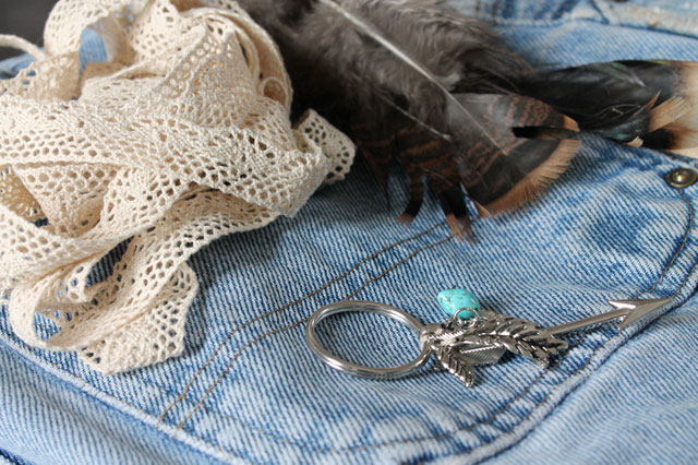 They chose 6 bloggers to create something from lace, old jeans, feathers and an old keychain. We could do anything we wanted with those items and were allowed to add to the list. When we finished, we were to post a step-by-step tutorial on our sites.