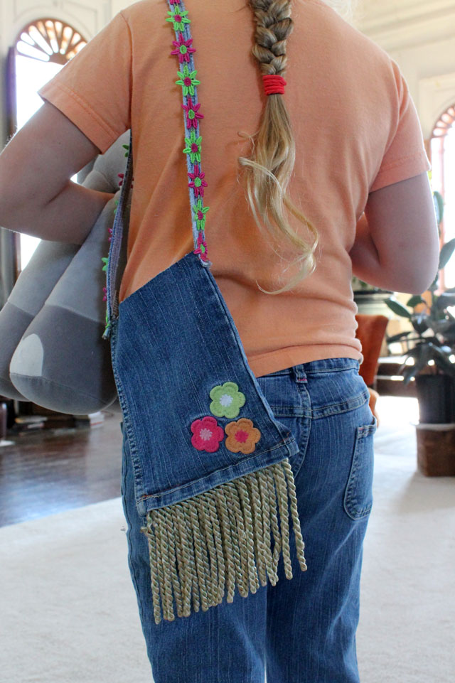 A Frugal Spinster sewed along with us and transformed some old jeans into a handy and durable shopping tote.