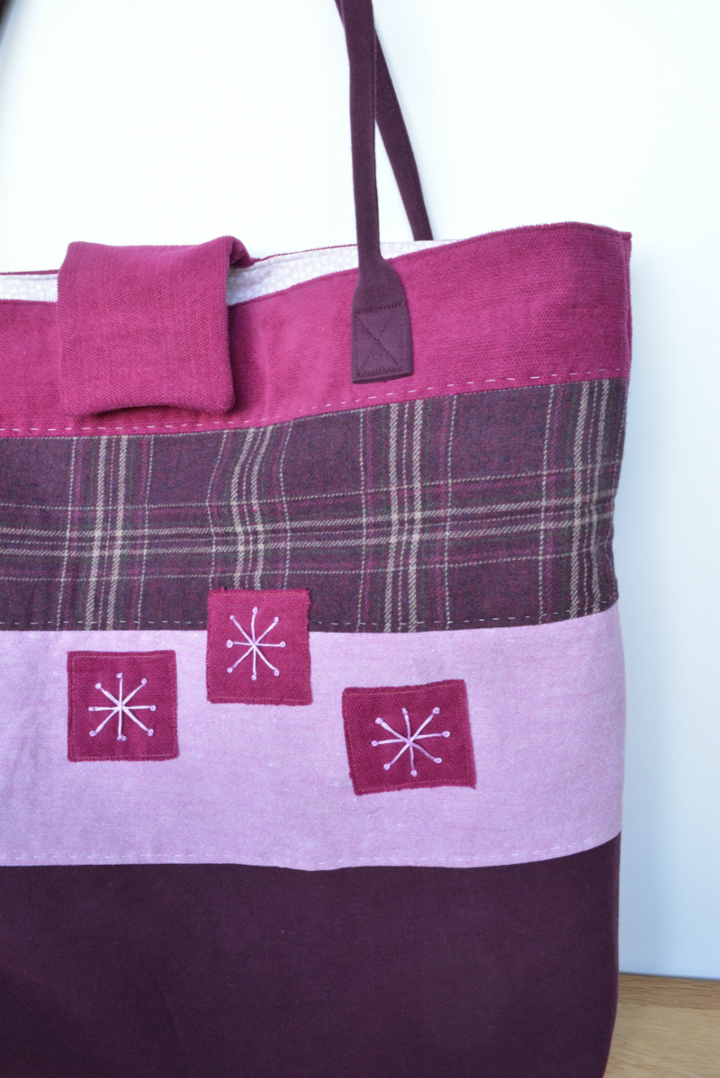 Vicky Myers from Vicky Myers Creations joined us for the sew along this week and created a lovely bag from some old trousers, a tweed skirt and a duvet.