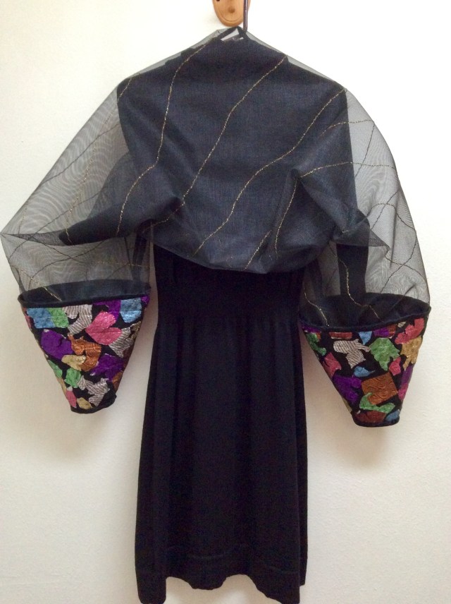 I created sleeves from the sheer overlay of the dress and carefully sewed