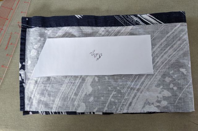 My experience with men’s shirts is that when I remove the cuff, the sleeve length is just shy of full length. Also because the pleat is released from the cuff, the sleeve bottom becomes a bit wider. After removing the cuff and looking at the result, I wanted even more flare to create a bell shape at the cuff. Solution? Add a godet in the sleeve placket using the cuff corner. Space for a second godet was created by making a pinked cut along the underarm seam and inserting the other cuff corner as seen in the picture below.
