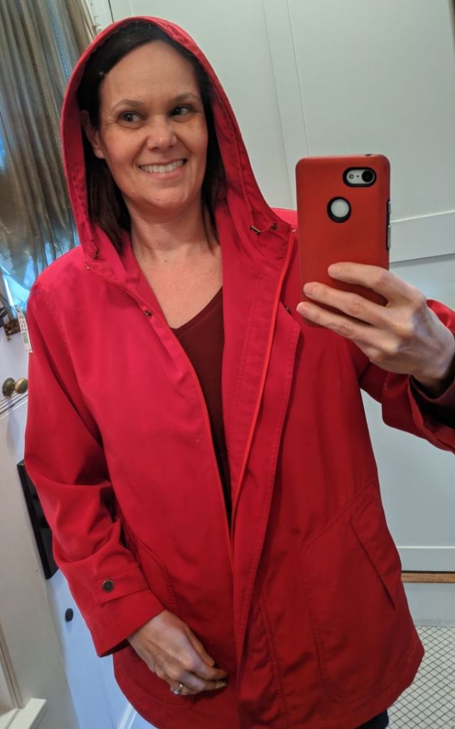 Now to create some drama – red is my favorite color and I love a red, white and blue combo (not just for July 4th!). I headed to my local Goodwill and scored this rain jacket with a broken zipper. I love the color and since it’s fully lined, I had a lot of material to play with.