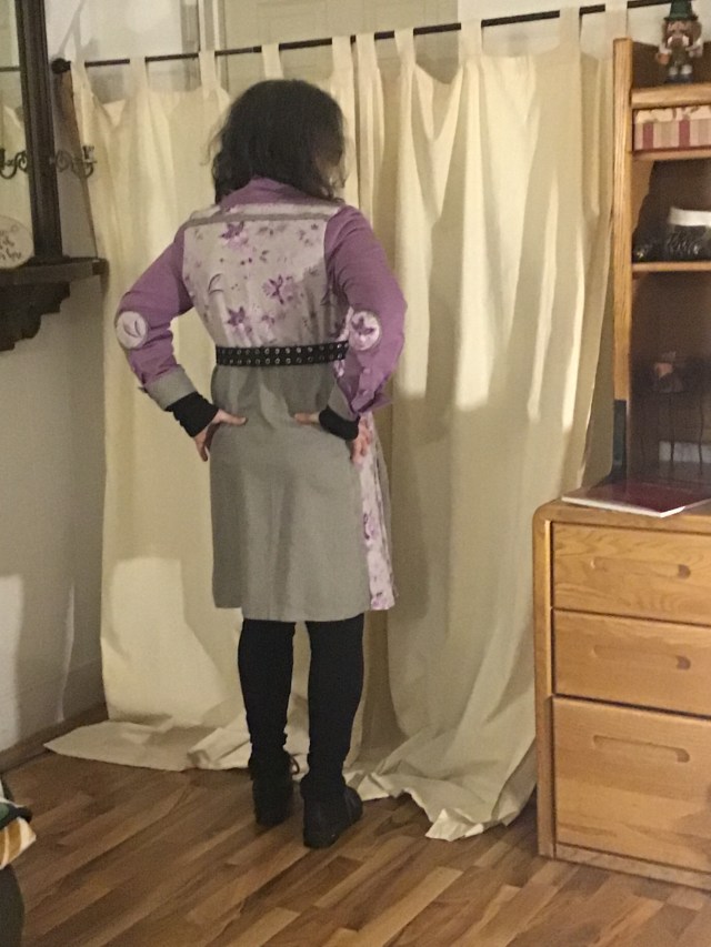 The shirt fit my bust, but would not button across my hips/belly, a typical problem for my pear shaped figure. I now had a button down shirt with a feminine sleeves and collar but not a very feminine bodice.