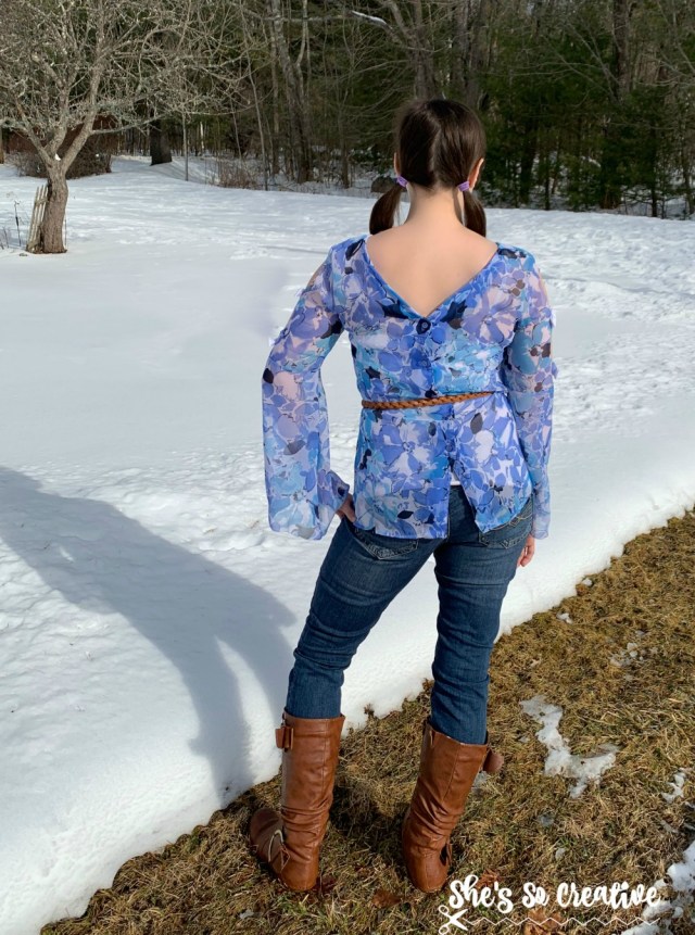 to make them long and flowy. The bottom of the sleeve goes from elbow to