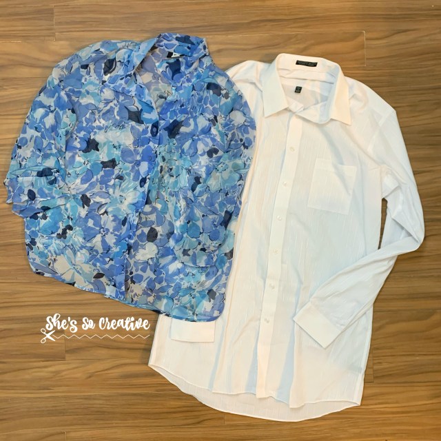 back panel out and patched in the white panel (blue shirt went from a 3X to a