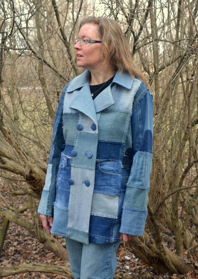 I knew I wanted to use jeans and make a patchwork Peacoat with this Challenge.