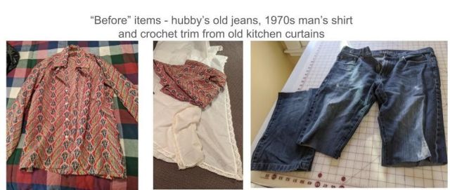 Absolutely love these creations, I have had a sewing machine-4 actually in my craft room, 3 are beautiful antiques and one newer model, I am blown away how you took something old and turned it into a completely different outfit. It makes me want to learn more on how to use my sewing machine instead of shopping for new clothes to make over my favourites. Fantastic idea and beautiful work.