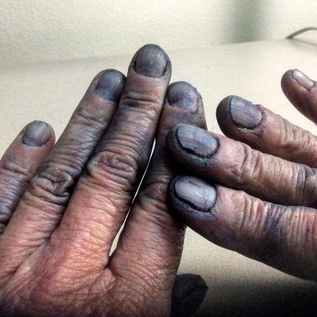 After all of the shibori work was done and compressed, the white panels were dipped numerous times in my indigo vat.