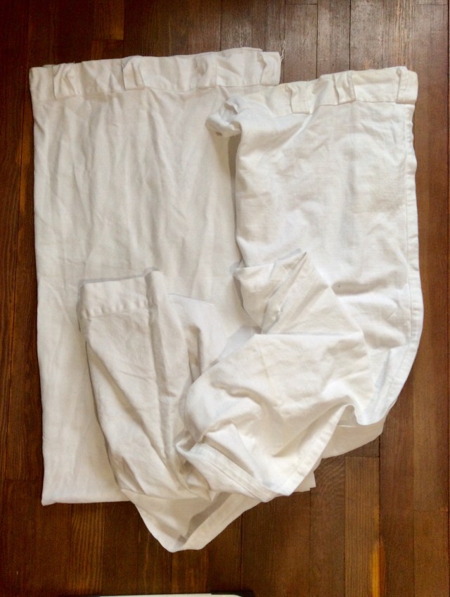 I found a pair of 100% cotton white drapery panels at the thrift store. They are great for dyeing and the perfect weight for aprons.