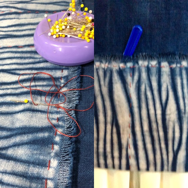 I have grown to love handstitching. The perfectly imperfect stitches compliment many of my natural dyed garments.