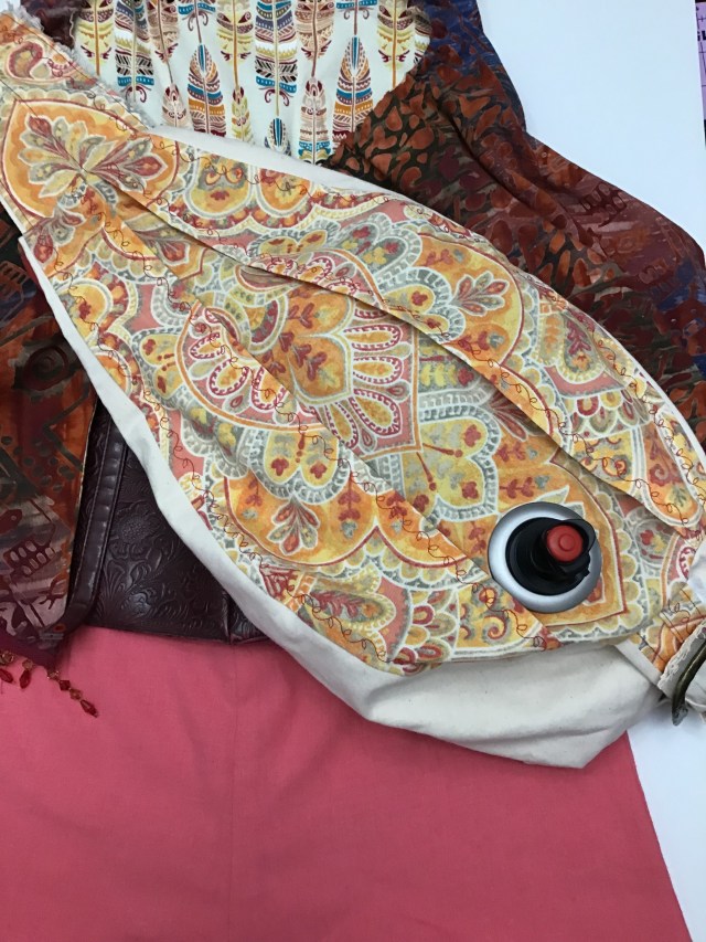 I designed and made this prototype of a WINE SLING, using remnants of muslin and