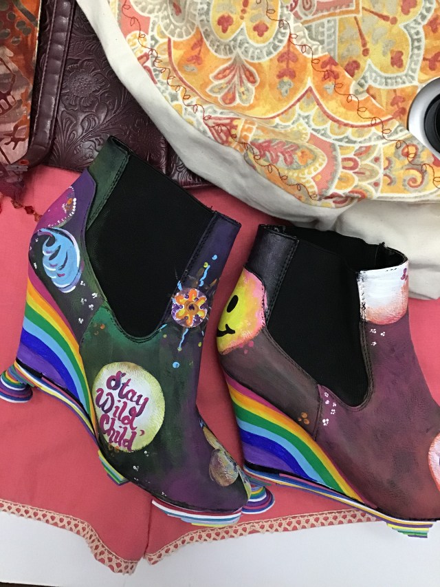 I did step into the modern platform booties. Basic black got a hand-painted graffiti