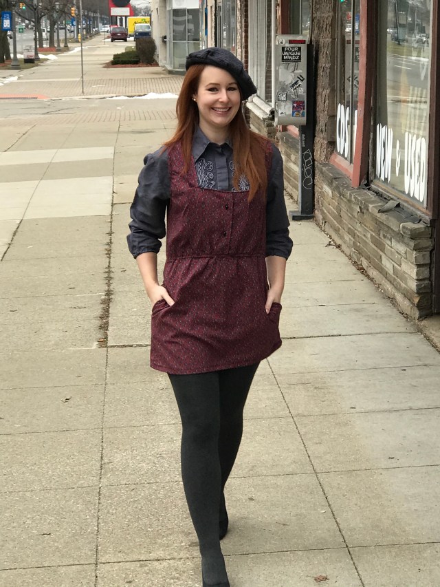 For my final touch I made a beret out of a grey sweater that I had thrifted!