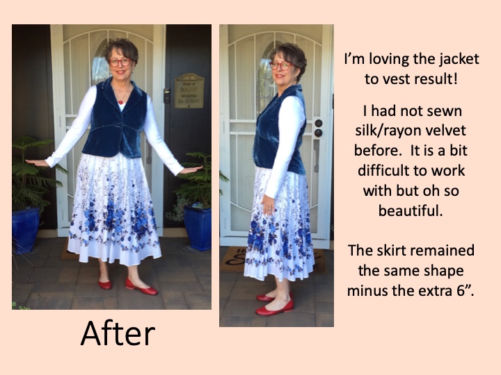 adjusted the remaining portion to fit my model Waist-hip creating an A-line skirt. I