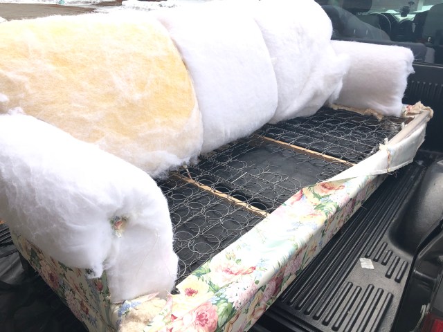 An outfit from a couch! Amazing job!!! This is recycling at its best! Great job!💯