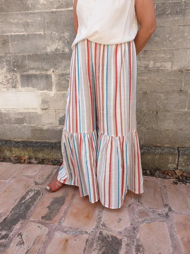Amy Smith sewed along with us this week and she turned a rather shapeless dress into some funky trousers. Now these are some serious bell bottoms! Be sure to send in your before and after pictures to bhunting@eoni.com if you’ve been sewing along this season. We’d love to see what you’ve created, too.