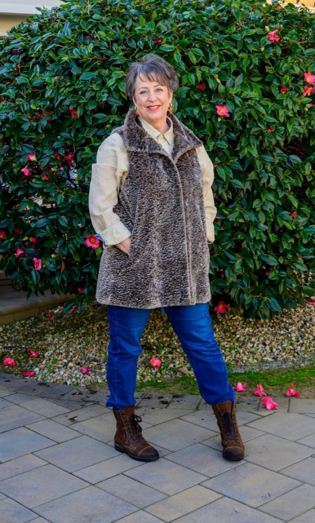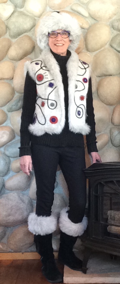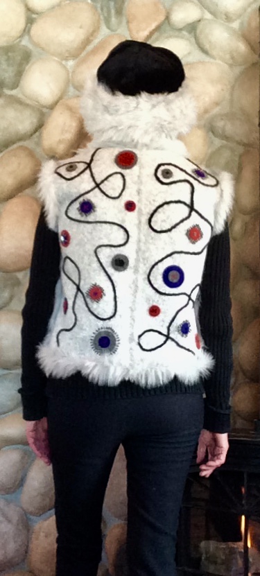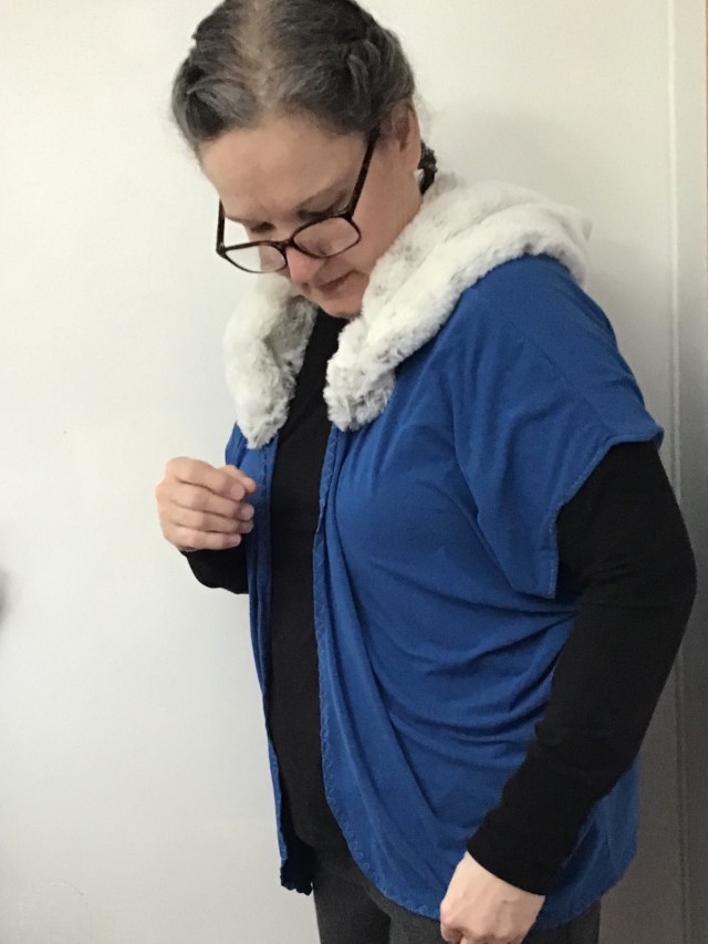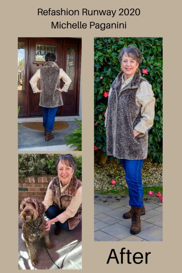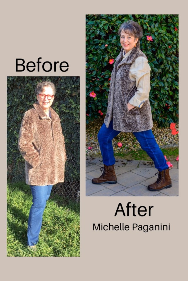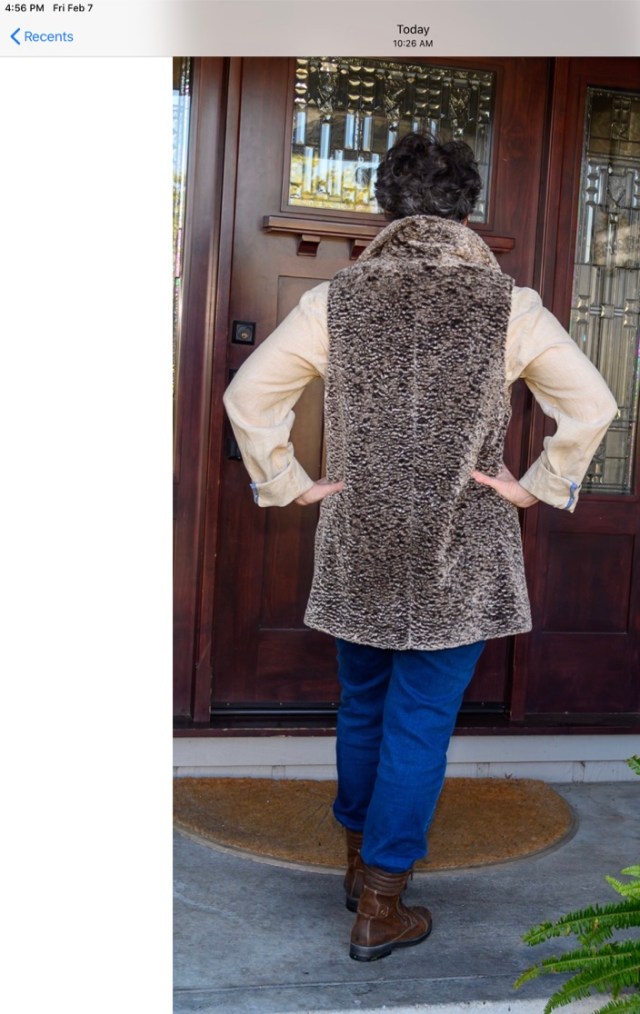 Faux fur coat to vest using wrong side as right side and fur side towards body.