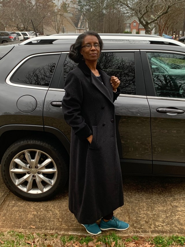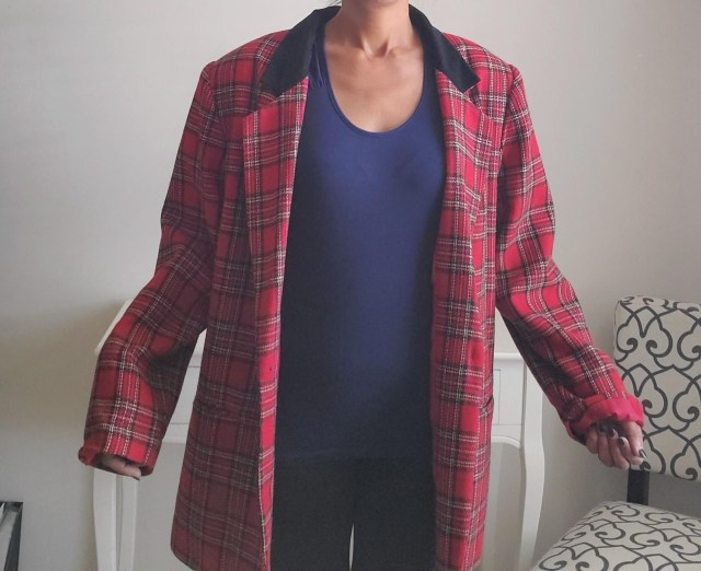 I love plaid and was excited to find this coat. I thought the black fur complemented the colors. I took apart the coat and reshaped the bodice and took in the sleeves. I did the same with the lining and replaced it. I cut the fur and sewed it on to the coat ( collar and sleeve). I hand sewed the hem. It was a challenge to work with the faux fur but I like how it turned out. I can wear it with a belt to dress it up or casual without.
