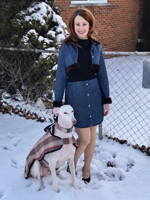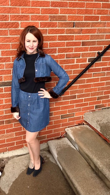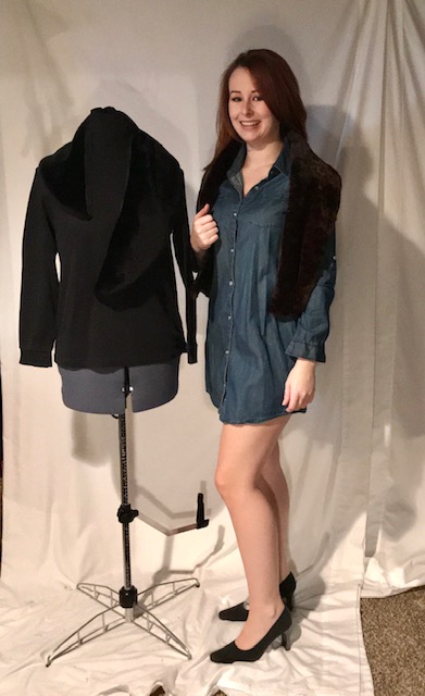 I started with a jean dress that I outgrew and a faux fur stole I scored at the