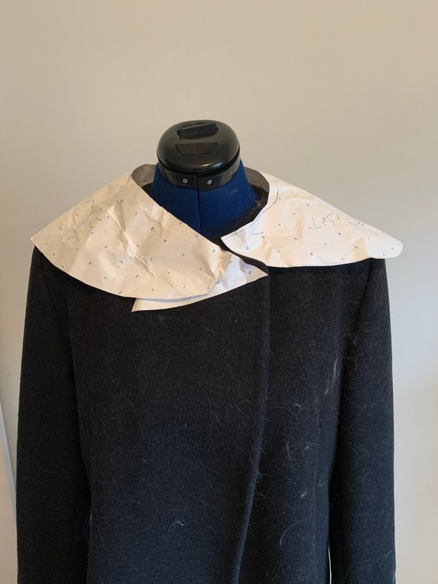 Everything is lined with the lining from the jacket and the clasp on the neck scarf is repurposed from the front of the coat.