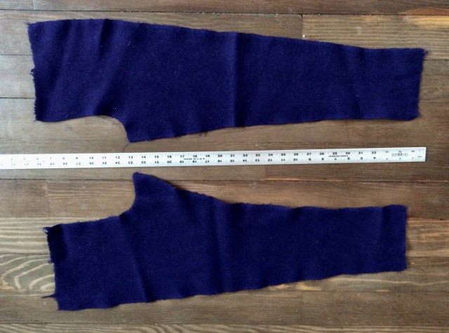 Thrift store wool pants and skirts shrunk by washing in hot water and hot dryer to make felted wool.
