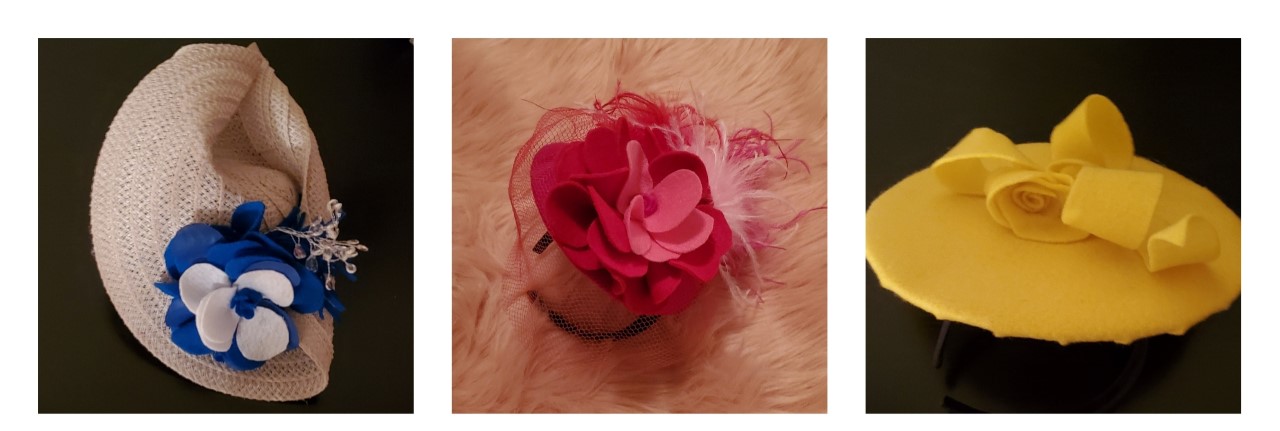 - The weight and balance of the finished hat should also be considered from the outset. Most couture hats are designed to sit at an angle (which is also generally most flattering) and some have a very pronounced tilt. This makes weight and balance critical for stability and comfort.